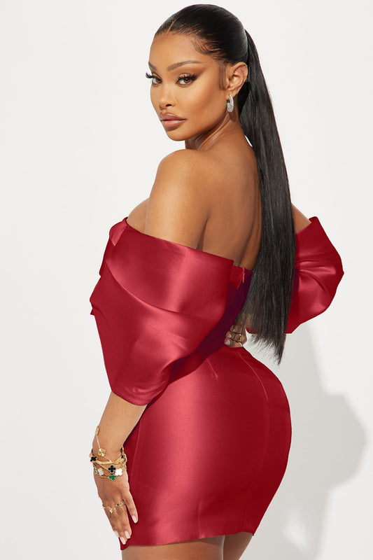 Adrianne Ruched Off Shoulder Bubble Mini Dress