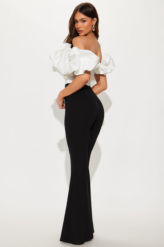 LLstyle Black Wide-Strap Flare-Leg Jumpsuit