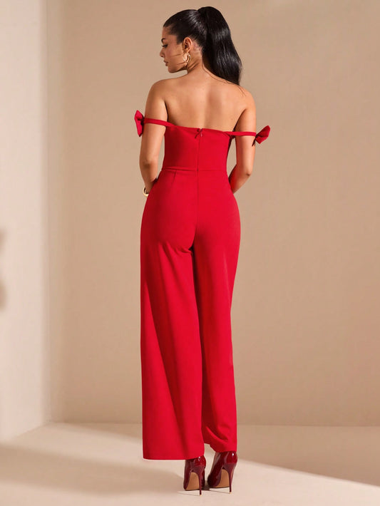 LLstyle Women's Solid Color Off-Shoulder Leg Jumpsuit