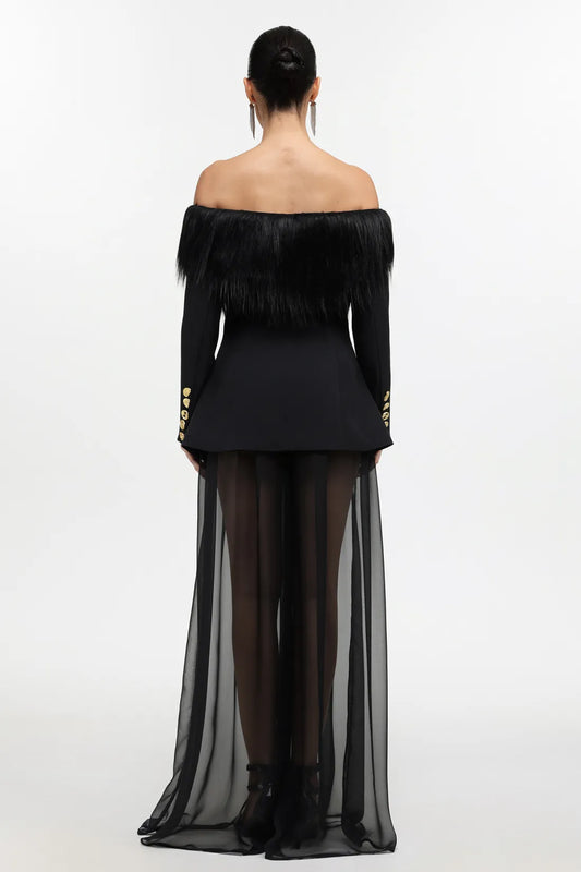 LLstyle Midnight Elegance Sheer Blazer Gown