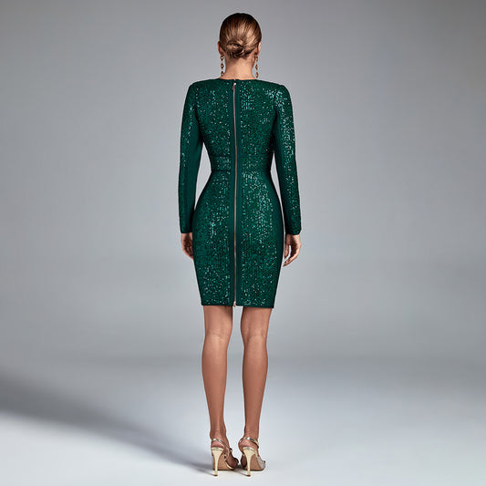 LLstyle Emerald Deep V Sequin Bodycon Dress