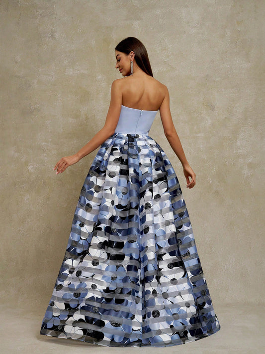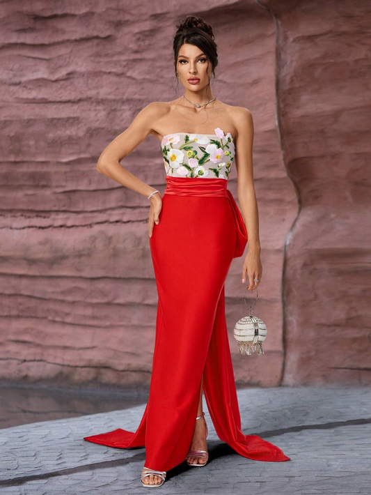 LLstyle Strapless 3D Flower Print Bandage Dress