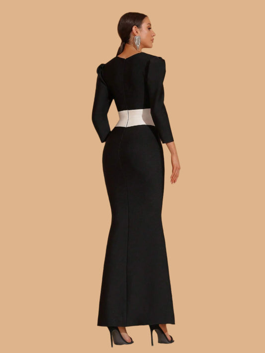LLstyle Fashion Ruffled Patchwork Bodycon Long Bandage Dress