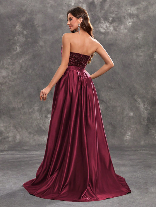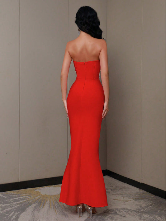 LLstyle Ladies' Party Dress With High Slit And Strapless Neckline