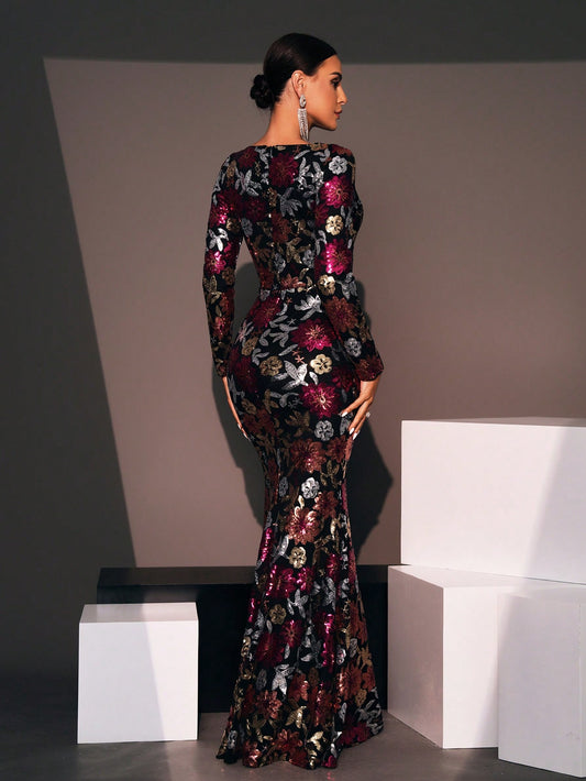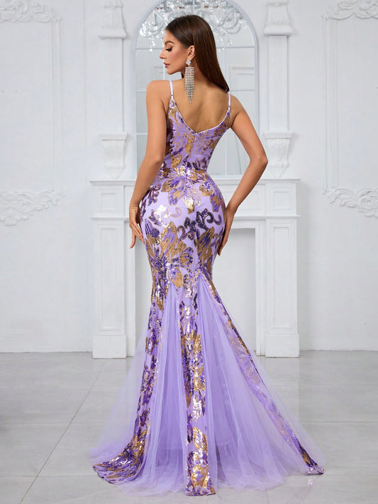 LLstyle Sparkly Embroidered Mermaid Evening Dress
