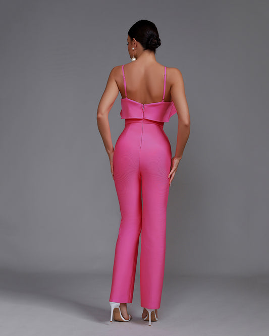 LLstyle Pink Ruffle Strap Jumpsuit