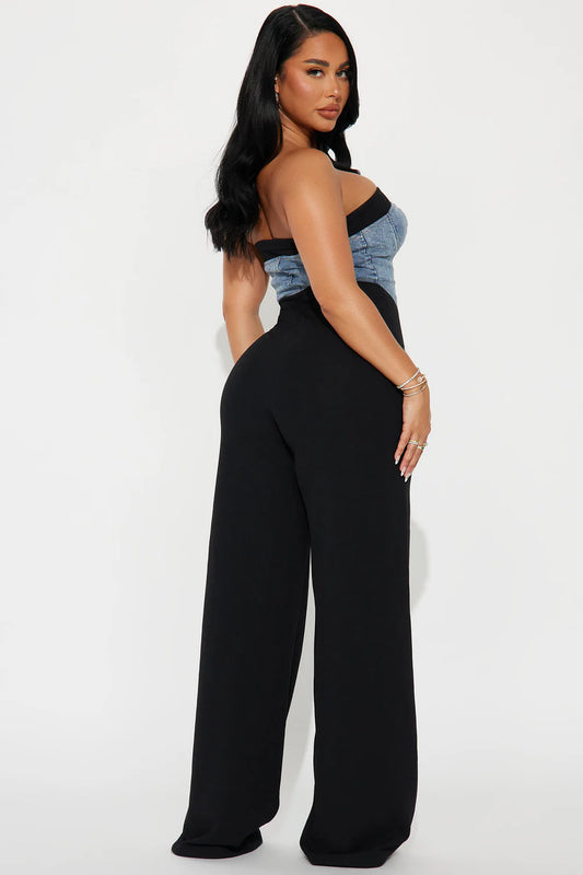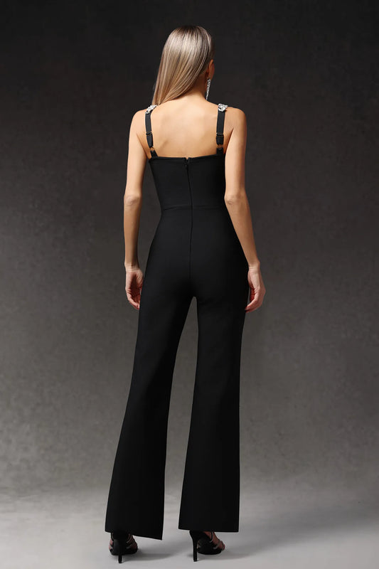 LLstyle Black Strapless Crystal Bust Jumpsuit