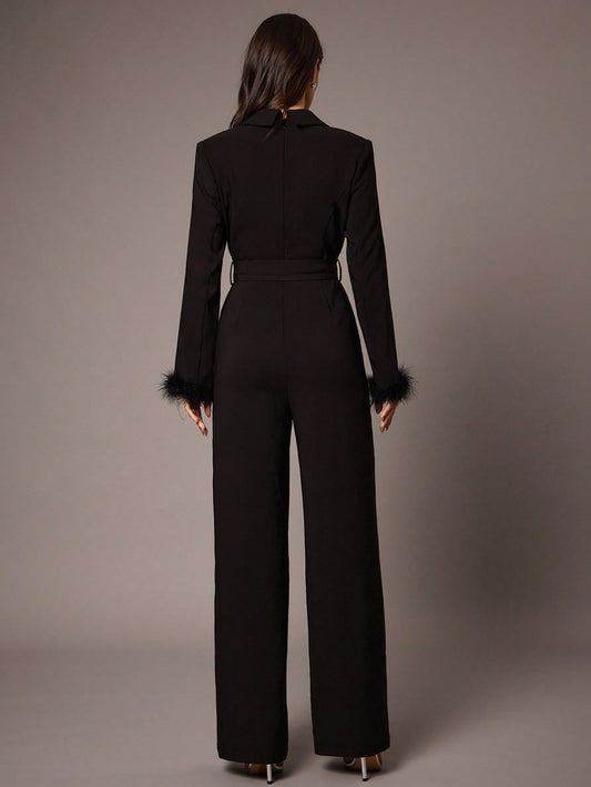 LLStyle Embellished Black Wide-Leg Jumpsuit