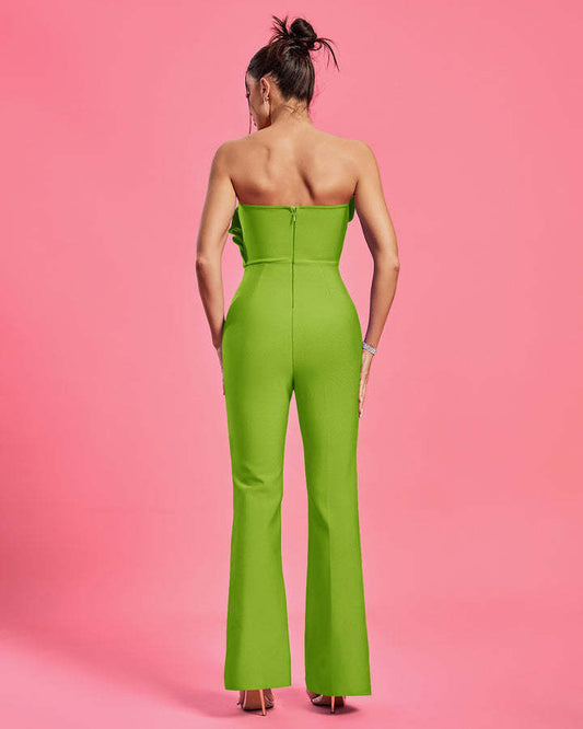 LLstyle Green Strapless Ruffle-Bodice Wide-Leg Jumpsuit