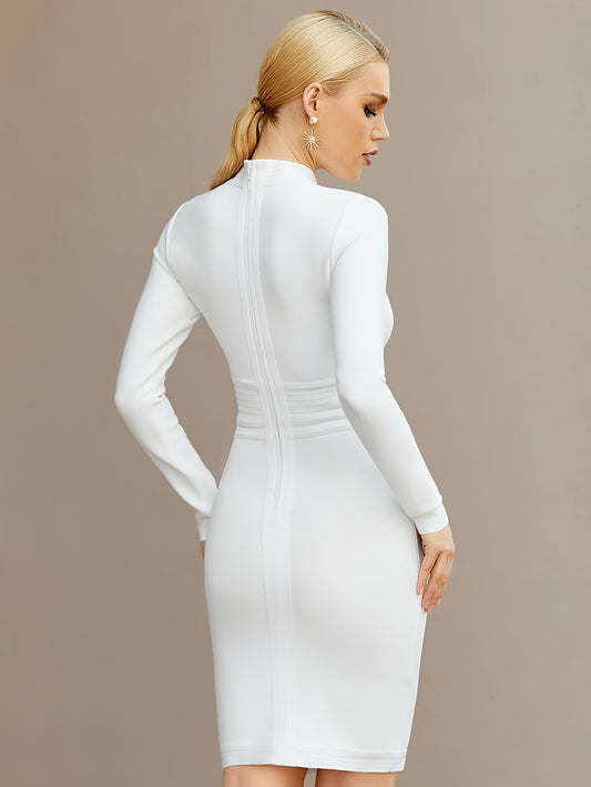 LLstyle Mock Neck Cut Out Button Bandage Dress