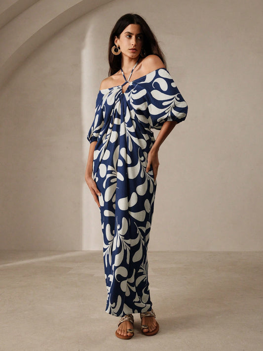 LLstyle Women's Plant Printed Off Shoulder Cross Dress