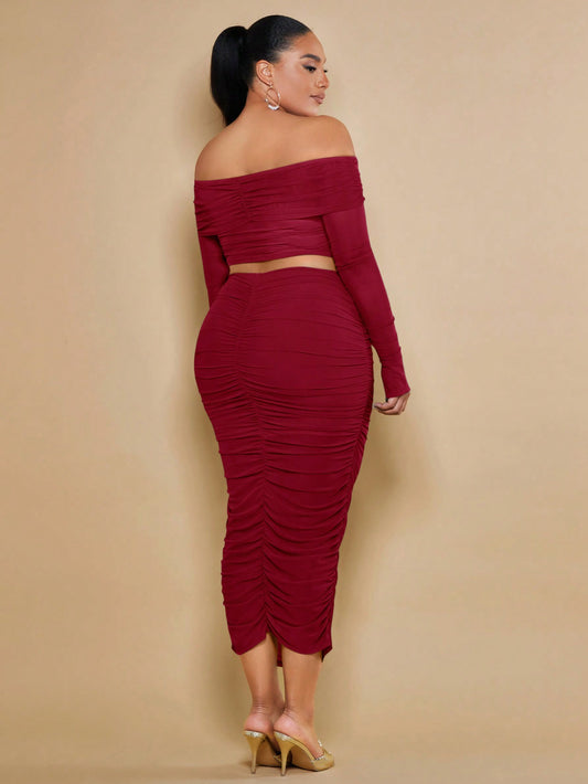 LLstyle Plus Size Off Shoulder Tight Top And Bodycon Skirt Set