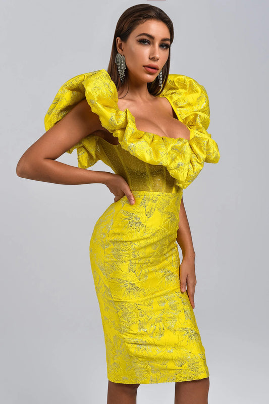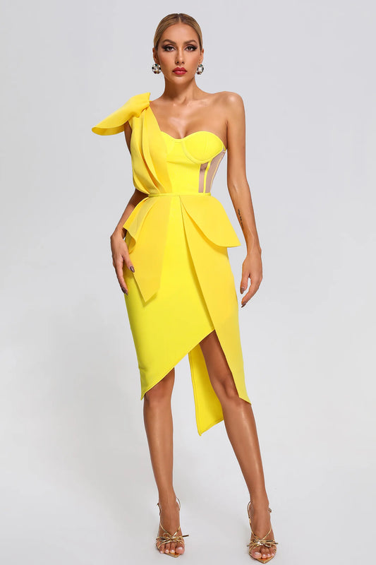 LLstyle One-Shoulder Sculpted Yellow Midi Dress