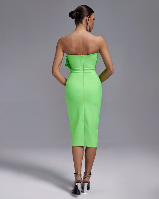 LLstyle Strapless Ruffle Detail Bodycon Midi Dress