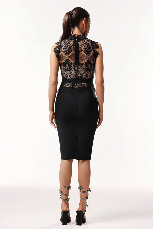 LLstyle Lace High-Neck Bodycon Midi Dress