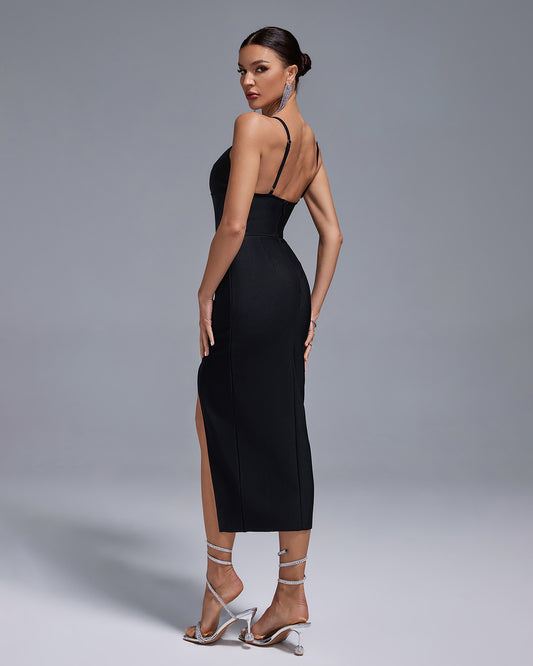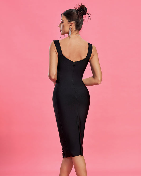 LLstyle Crystal Cross-Neck Bodycon Midi Dress