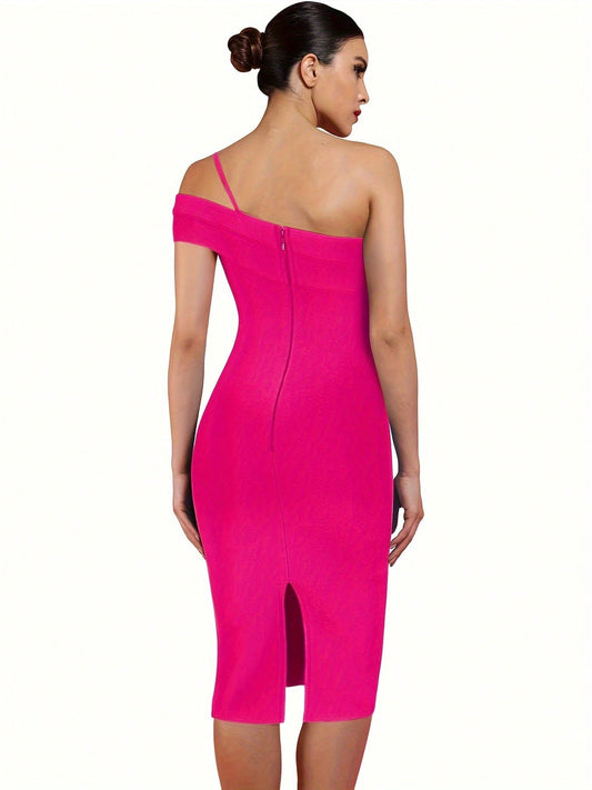 LLstyle Women's One-Shoulder Solid Color Bandage Dress