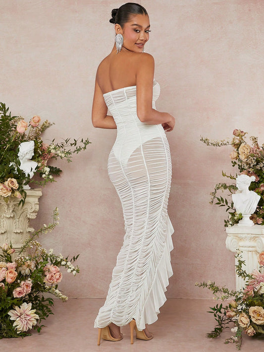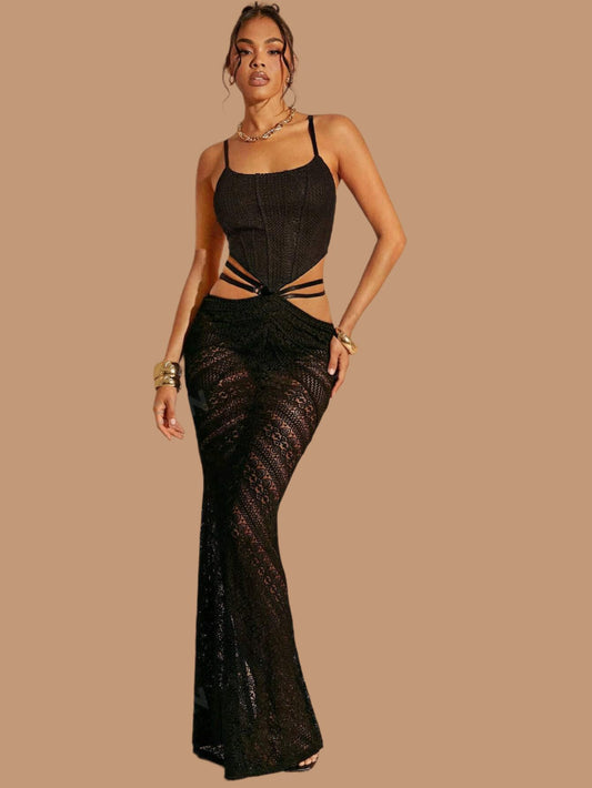 LLstyle Strapless Hollow Out 3D Floral High Waisted Maxi Dress