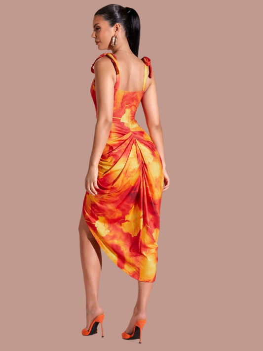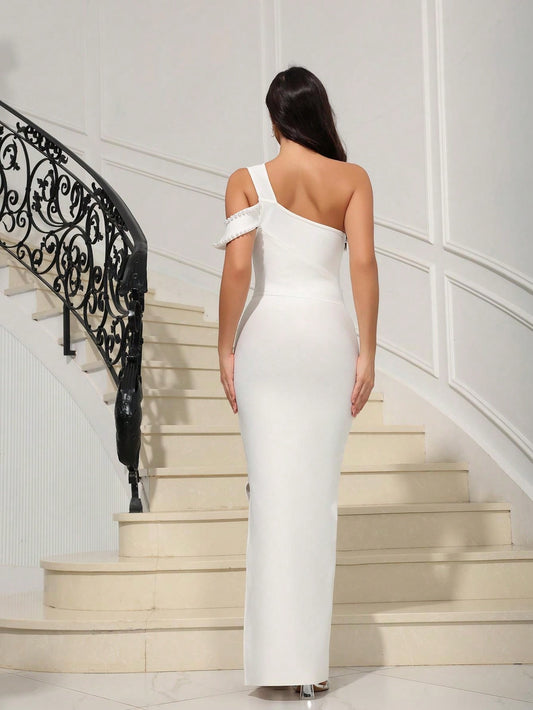 LLstyle Asymmetric High Slit Chest Cup Bow Ladies Dress