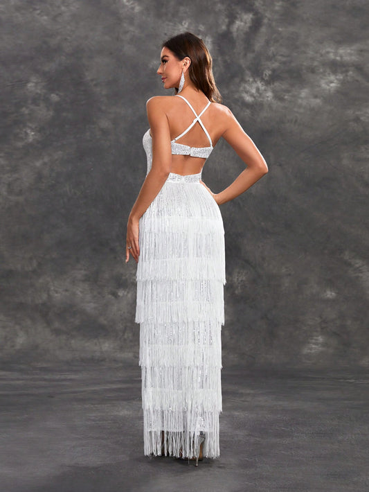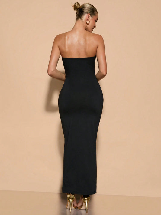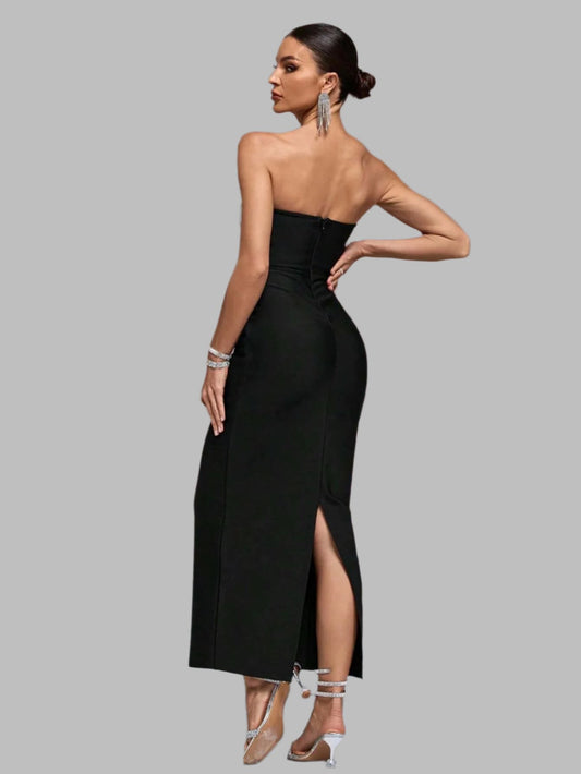 LLstyle Contrast Sequin Ruched Split Thigh Tube Dress