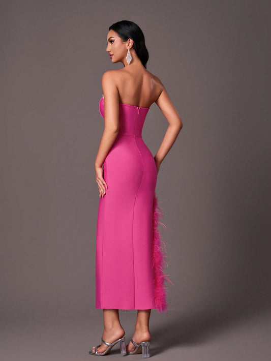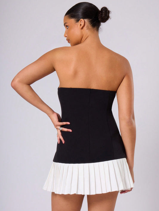 LLstyle Plus Size Elegant Woven Pleated Hem Strapless Dress