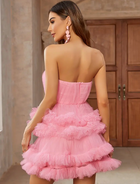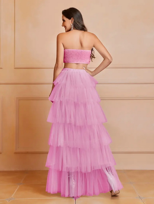 LLstyle Elegant Strapless Tiered Hem Floor Length Tulle Dress