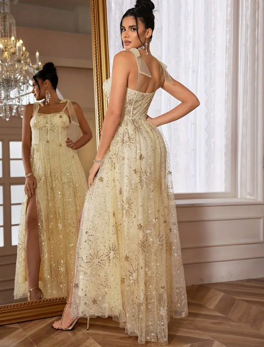 LLstyle Sequins Knot Strap A-line Tank Dress