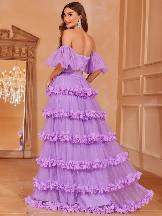 LLstyle Puff Sleeve Crop Top & Frill Trim Skirt