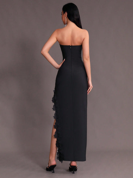 LLstyle Fashionable Strapless V-Neck Maxi Dress