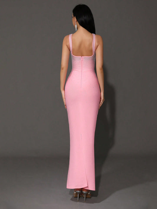 LLstyle 2024 New Pink Luxury Rhinestone Sleeveless Dress