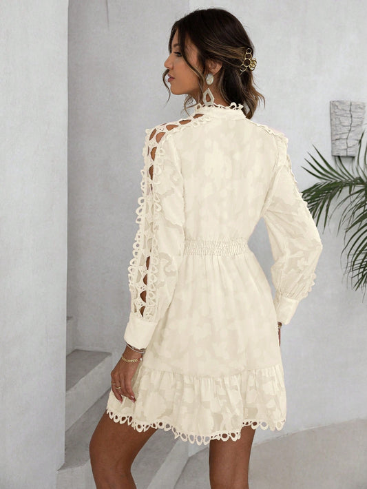 LLstyle Guipure Lace Insert Ruffle Hem Dress