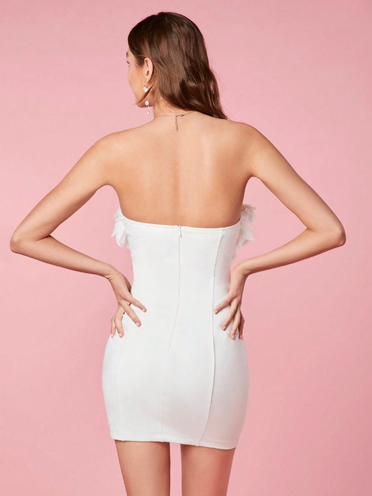 LLstyle Women Strapless Party Coquette White Mini Dress