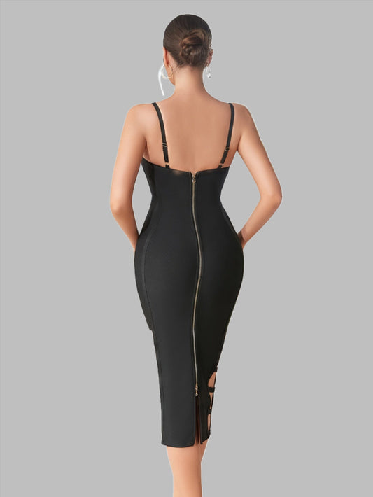 LLstyle Zipper Bodycon Spaghetti Strap Dress