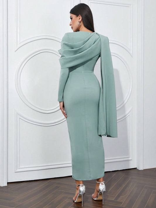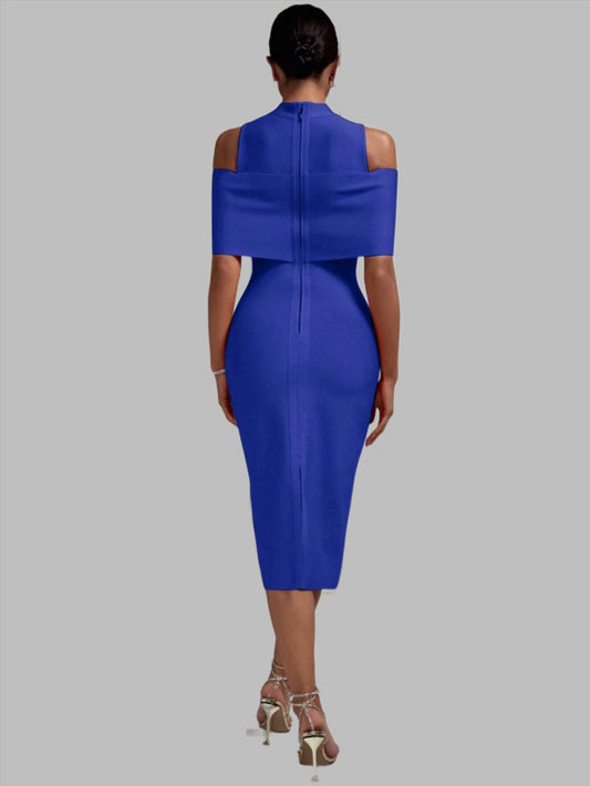 LLstyle One Sleeve Form-Fitting Round Neck Bandage Midi Dress