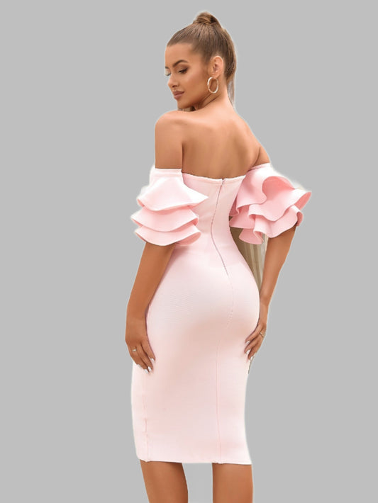 LLstyle Layered Ruffle Trim Off Shoulder Dresss