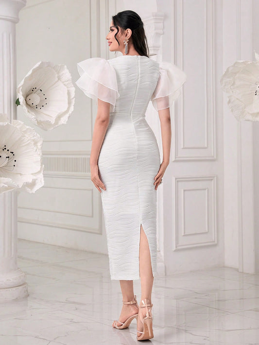 LLstyle Ruffle Sleeve Jacquard Texture Slim Dress