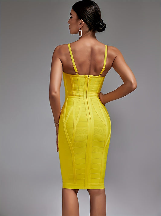 LLstyle Solid Bandage Suspenders Stitch Dress