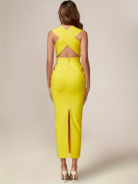 LLstyle Elegant Plunging Neck Sleeveless Backless Split Dress