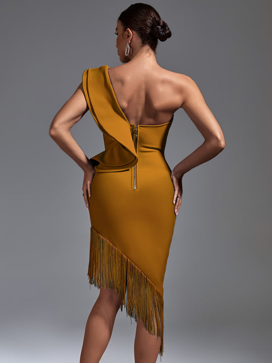 LLstyle Fringe Hem Bias Cut One-shoulder Dress