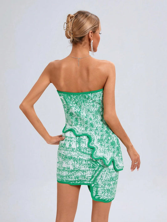 LLstyle Women Sexy Asymmetric Strapless Top+ Mini Skirts