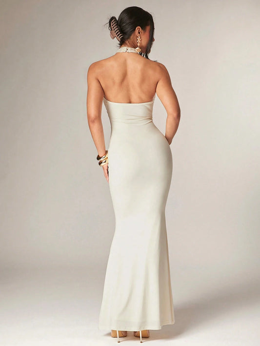 LLstyle Women's Elegant Wrap Overlay Design Halter Dress