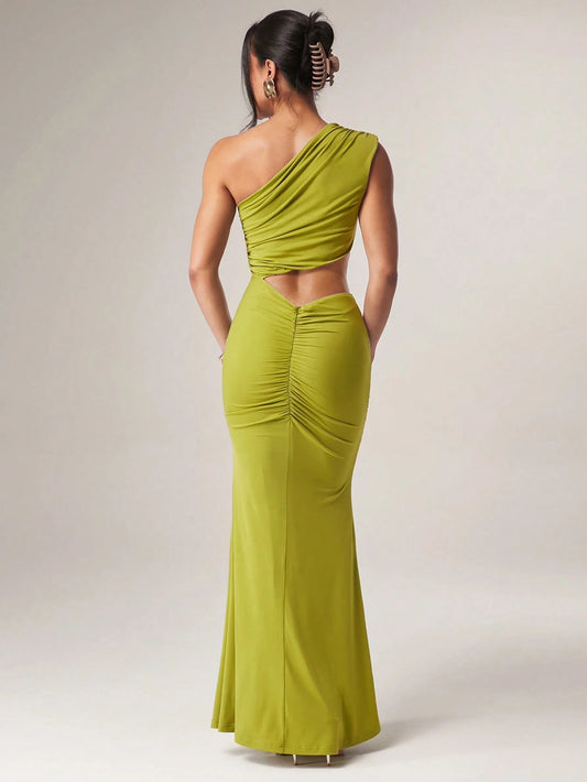 LLstyle Women's Elegant Party Asymmetrical Draped Maxi Fishtail Dress
