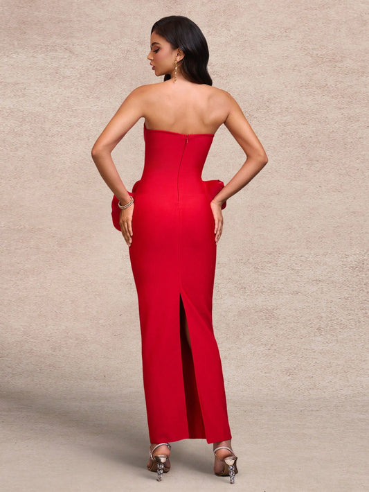 LLstyle Strapless Fashionable Three-Dimensional Large Flower Party Slim Dress