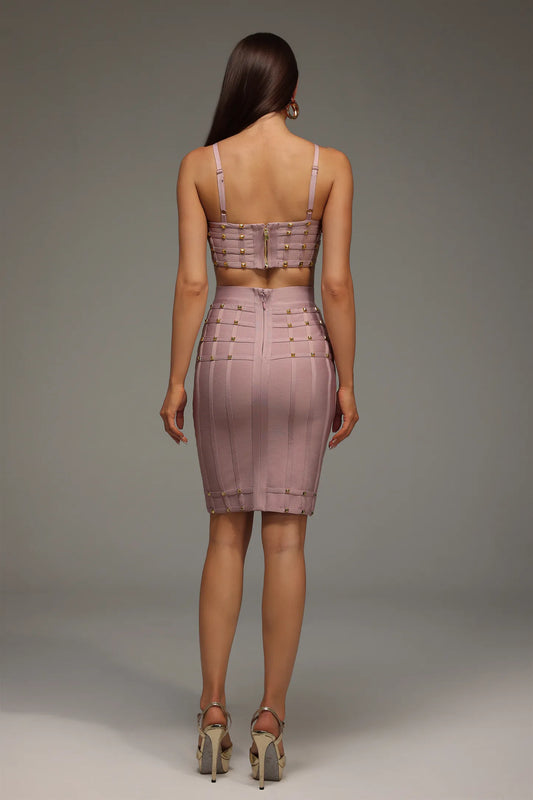 LLstyle Asymmetrical Neck Rhinestone Decor Fitted Bandage Dress