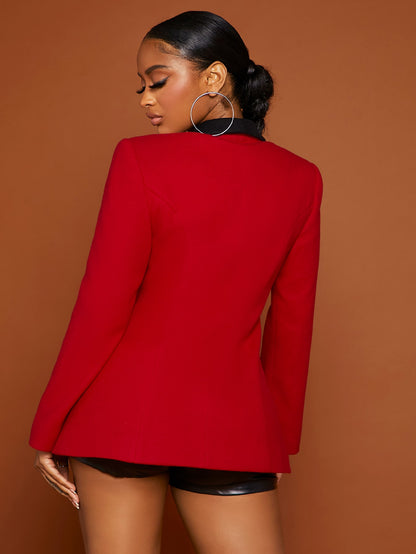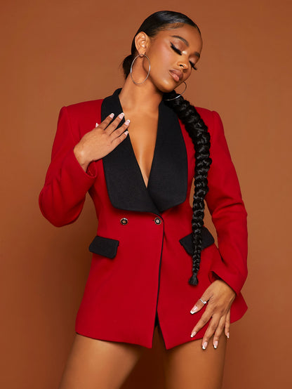 LLstyle Contrast Collar Double Breasted Blazer Dress