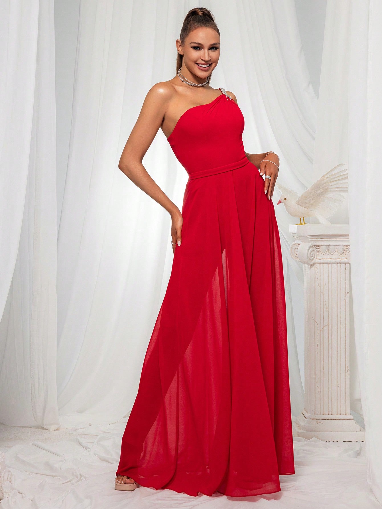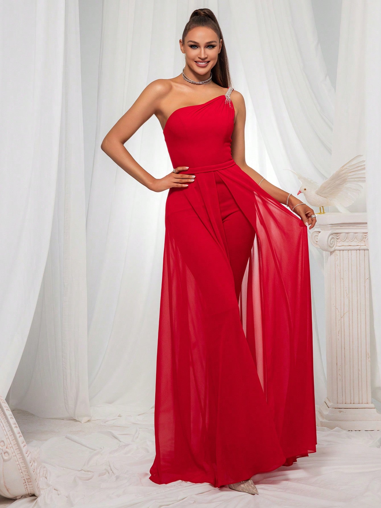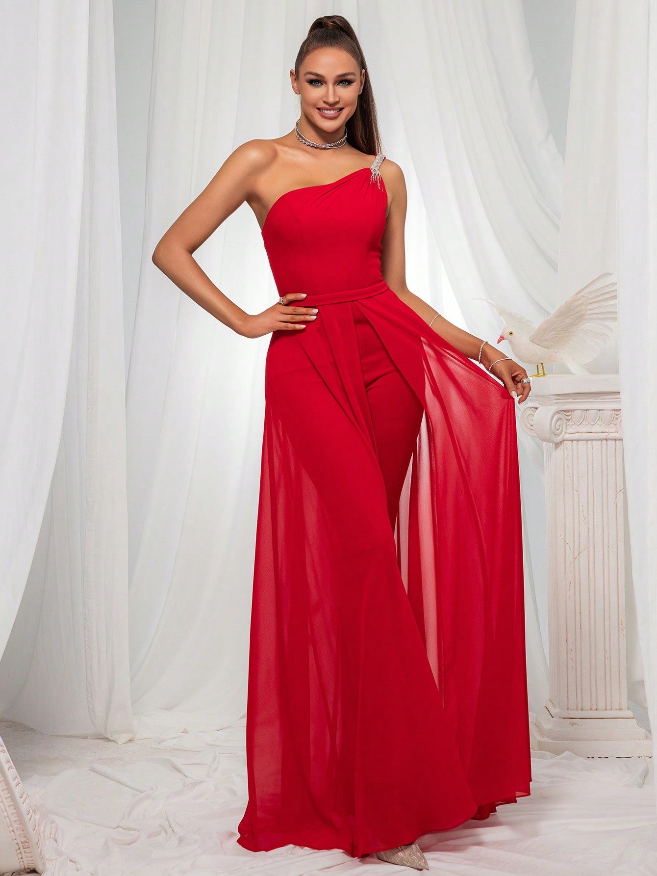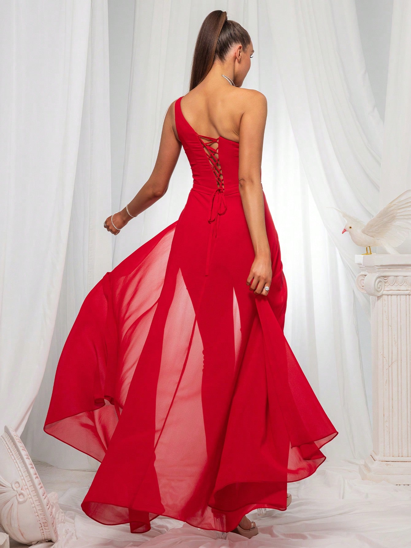 LLstyle One-Shoulder Floral Appliqué Evening Gown