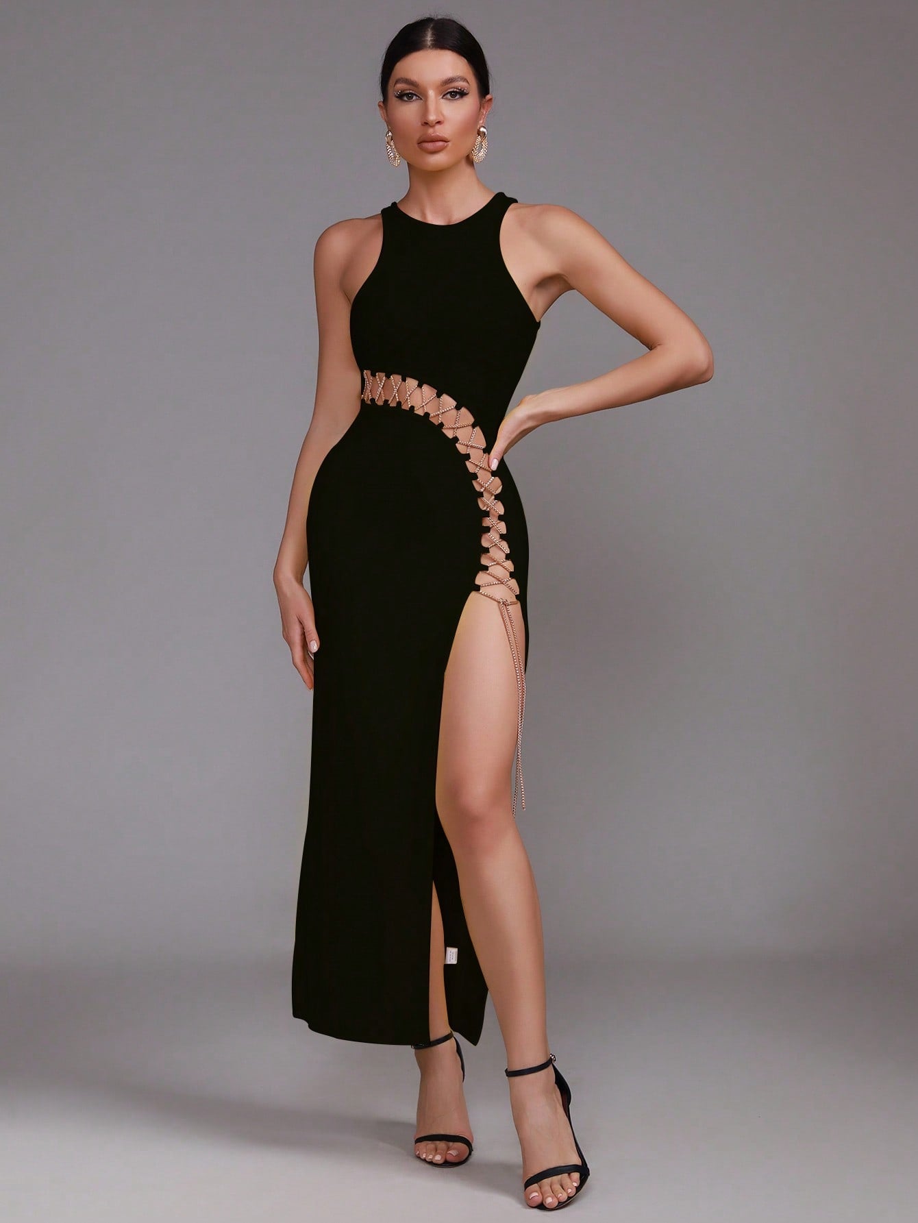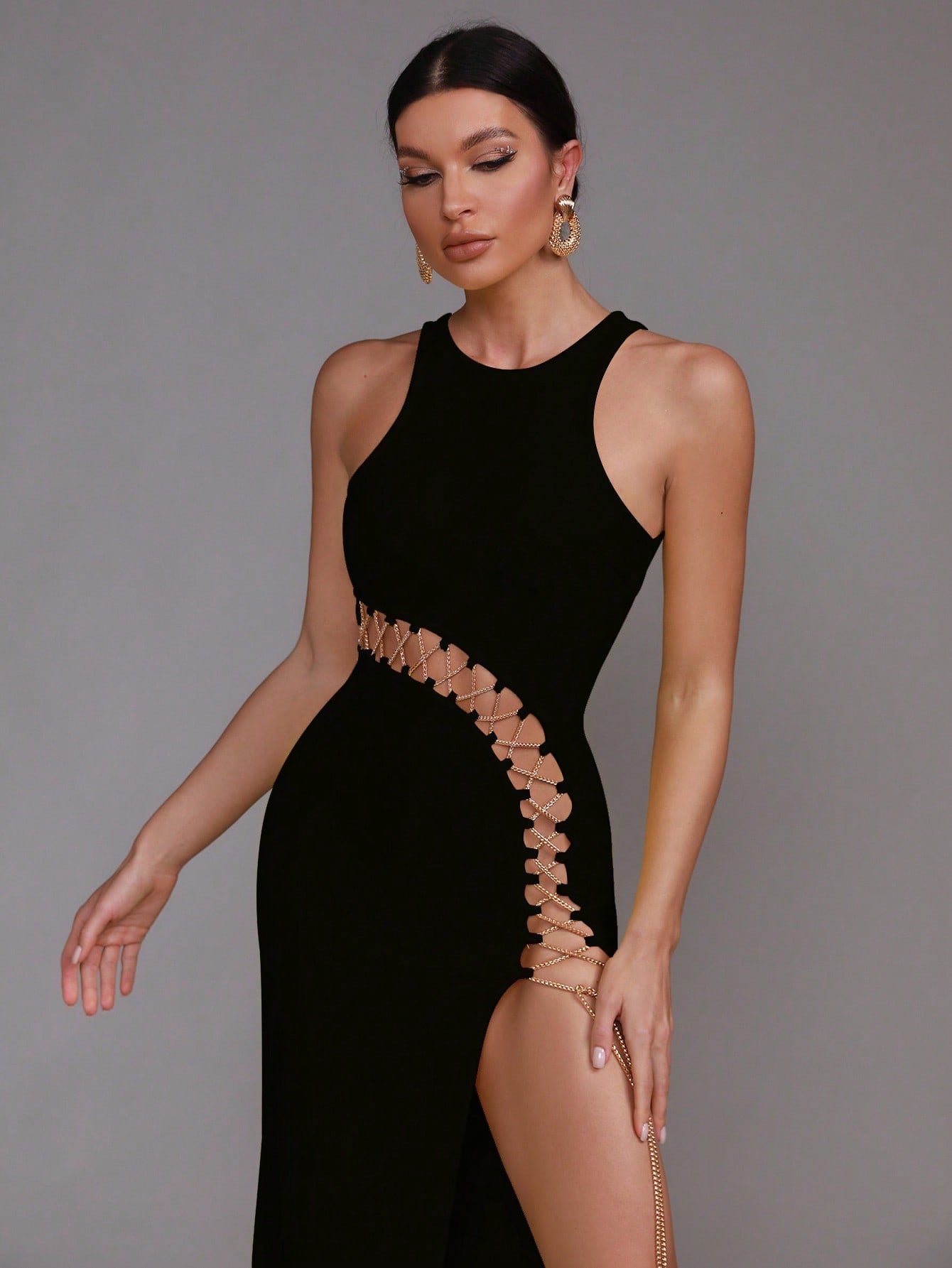 LLstyle White Regal Chain-Embellished Maxi Dress