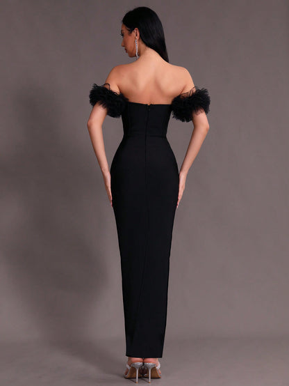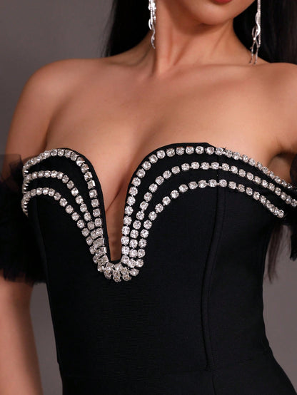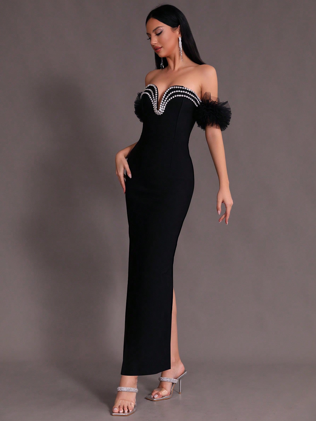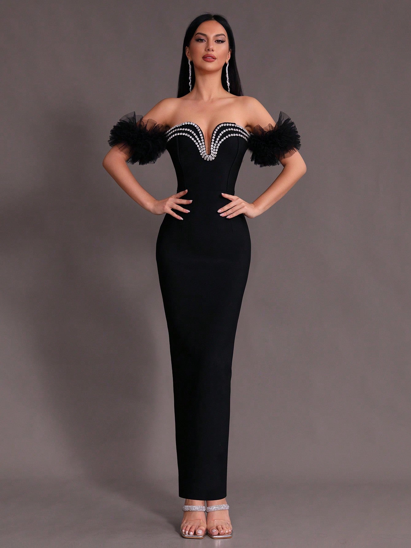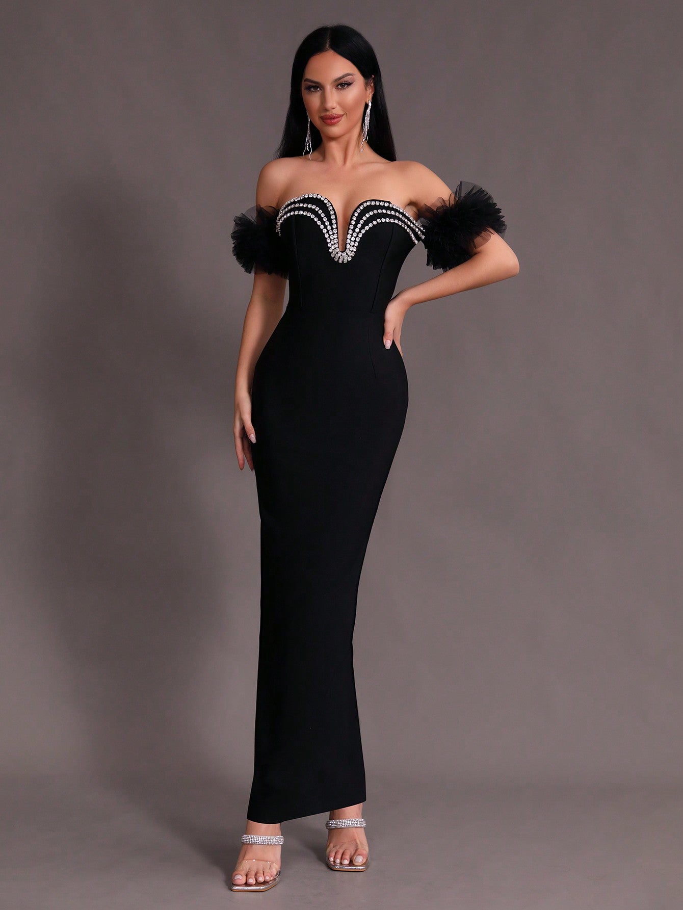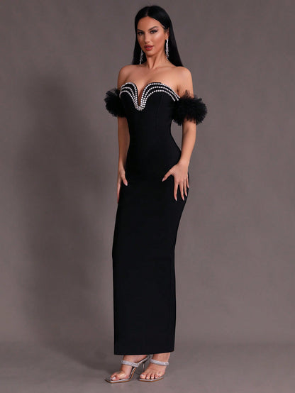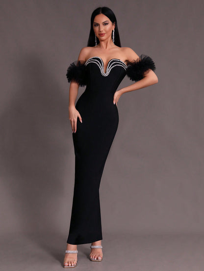 LLstyle Luxurious Rhinestone Sexy Off-Shoulder Long Bandage Dress