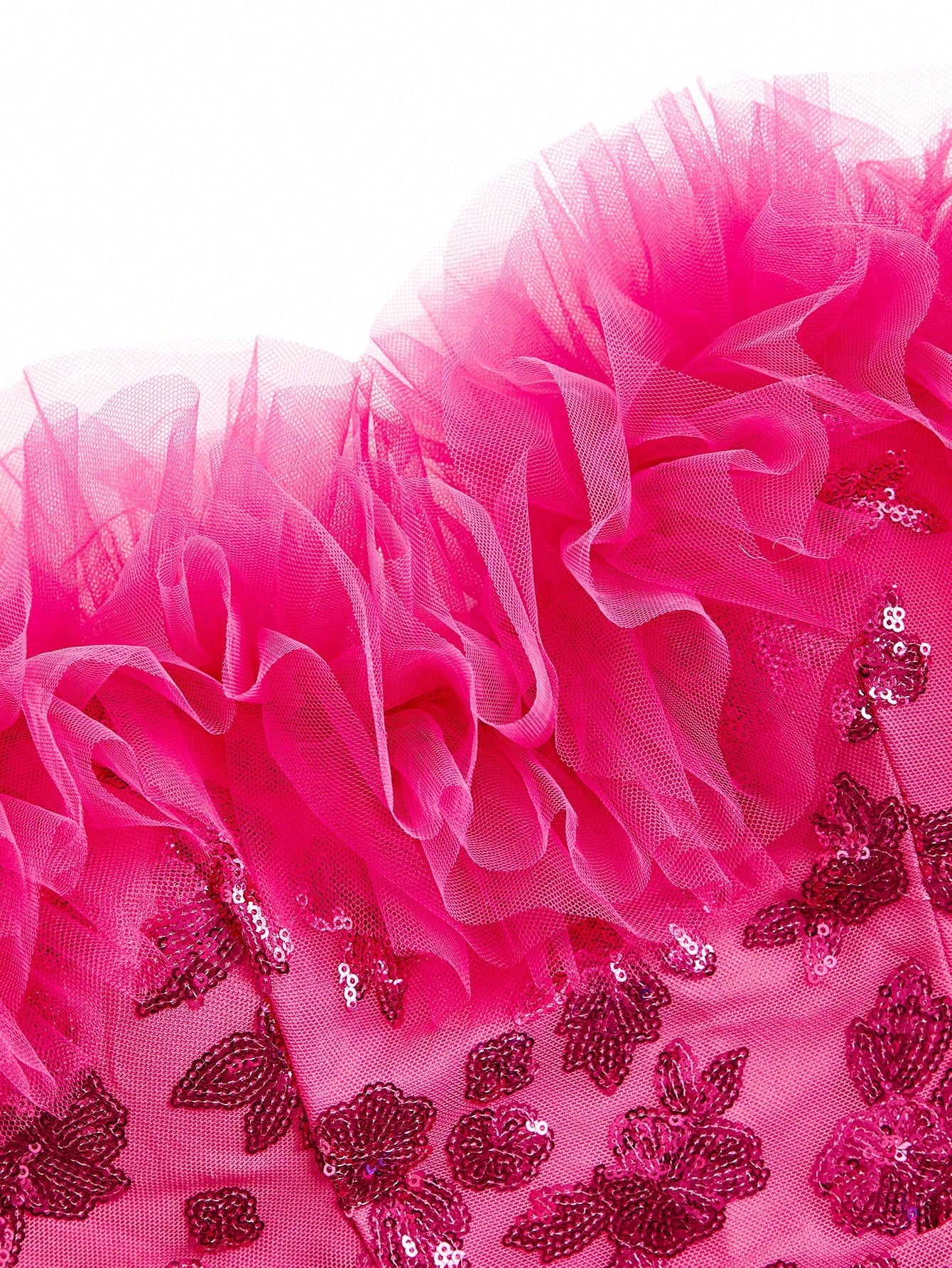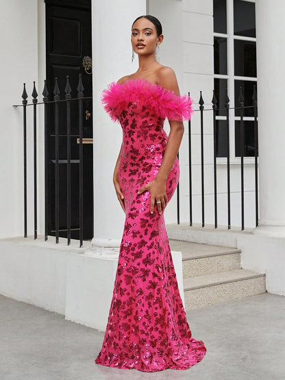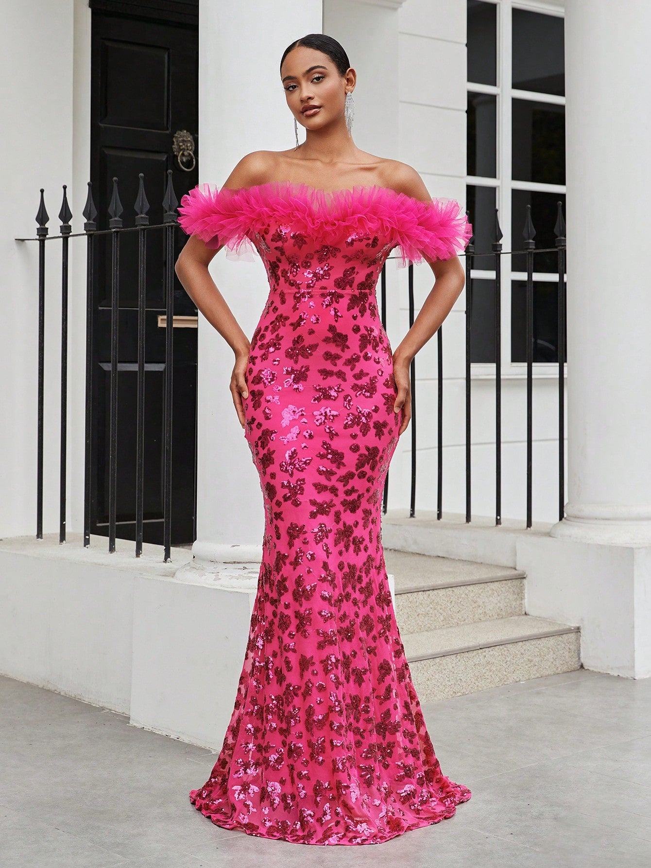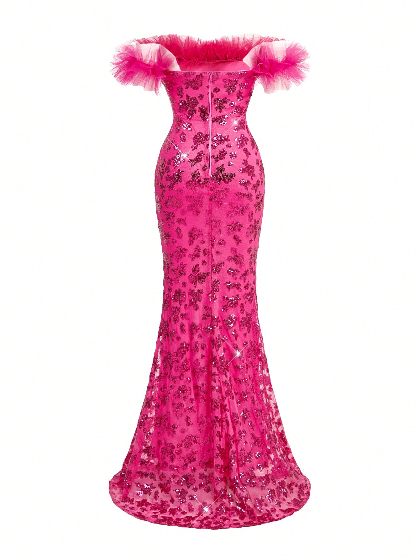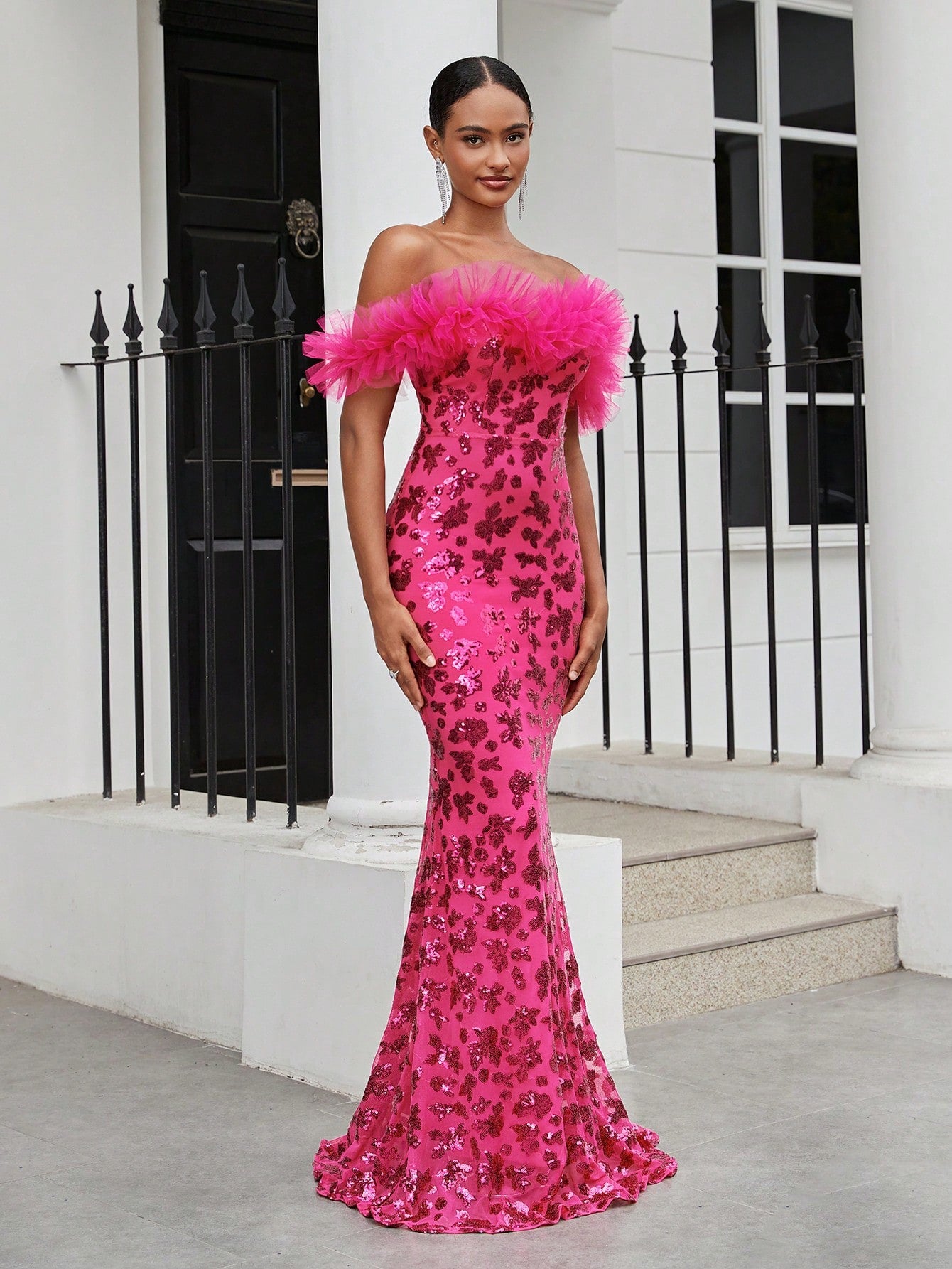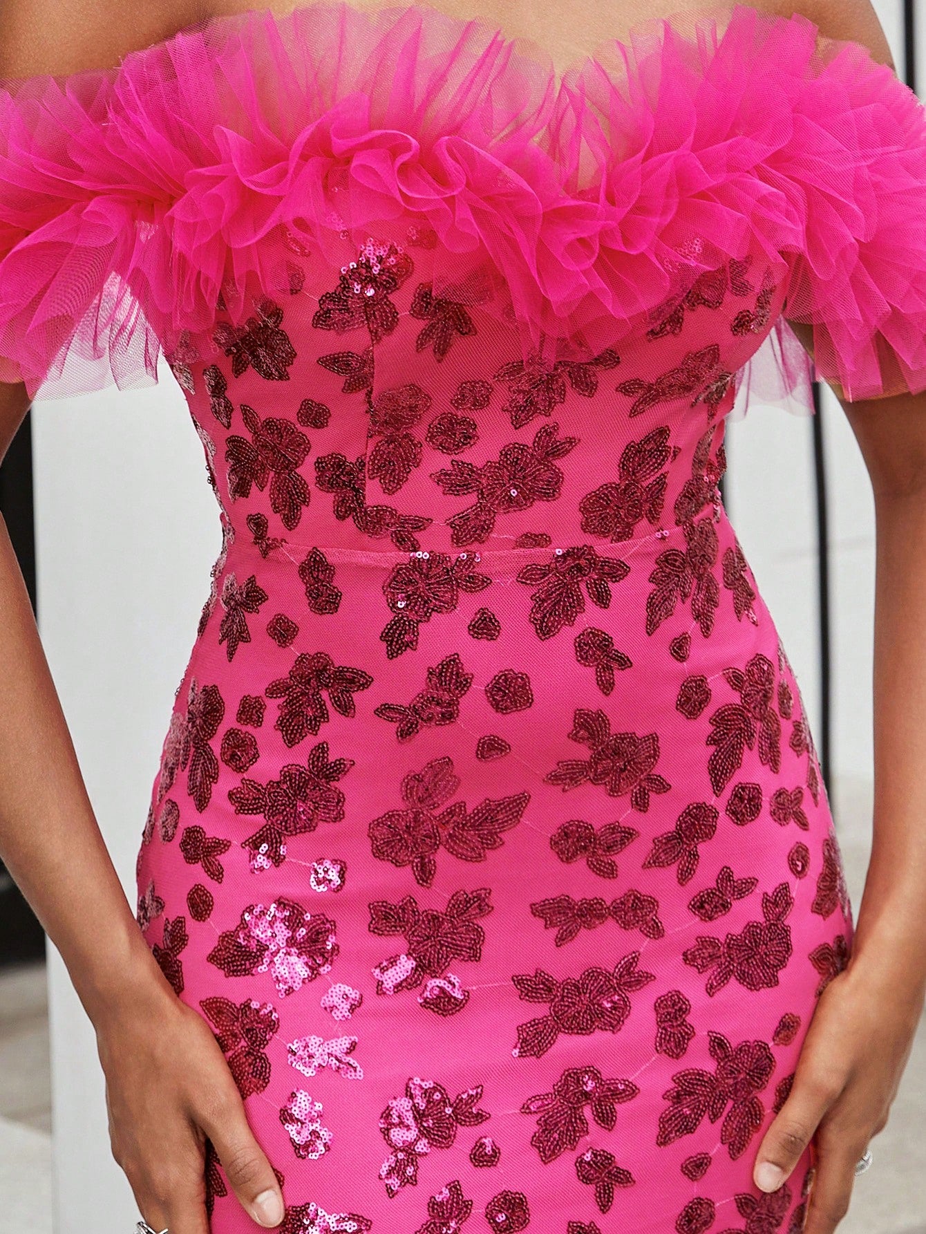 LLstyle Hot Pink Ruffle Off-Shoulder Midi Dress