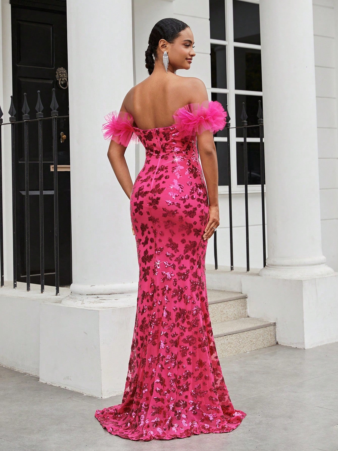 LLstyle One-Shoulder Floral Appliqué Evening Gown